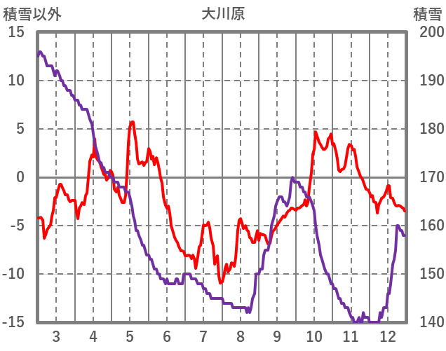 | 日 | 時 | 気温 | 降水 | 風向/風速 | 日照 | 積雪 | 降雪 |