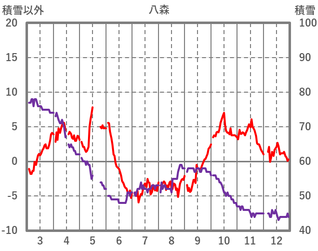 | 日 | 時 | 気温 | 降水 | 風向/風速 | 日照 | 積雪 | 降雪 |