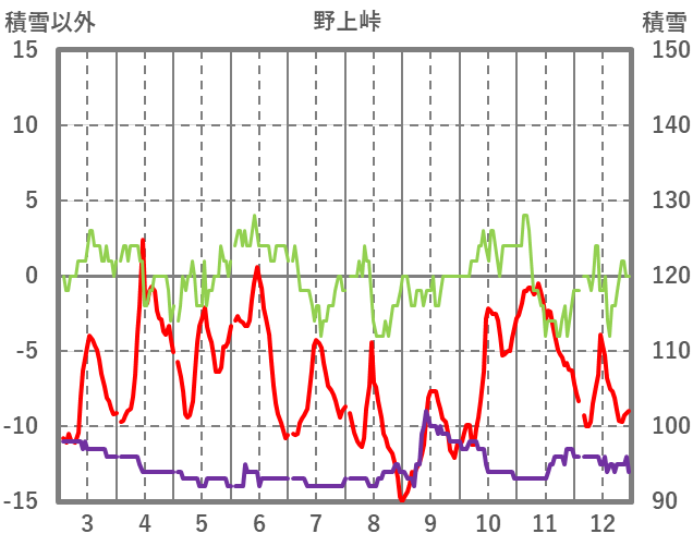 | 日 | 時 | 気温 | 降水 | 風向/風速 | 日照 | 積雪 | 降雪 |