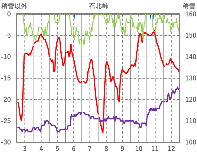 | 日 | 時 | 気温 | 降水 | 風向/風速 | 日照 | 積雪 | 降雪 |