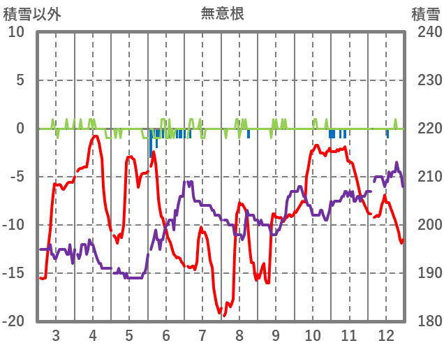 | 日 | 時 | 気温 | 降水 | 風向/風速 | 日照 | 積雪 | 降雪 |