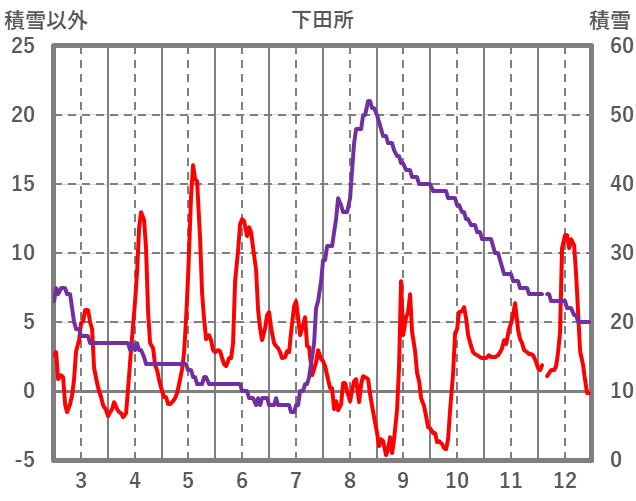 | 日 | 時 | 気温 | 降水 | 風向/風速 | 日照 | 積雪 | 降雪 |