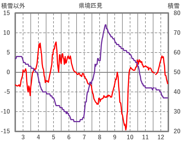 | 日 | 時 | 気温 | 降水 | 風向/風速 | 日照 | 積雪 | 降雪 |