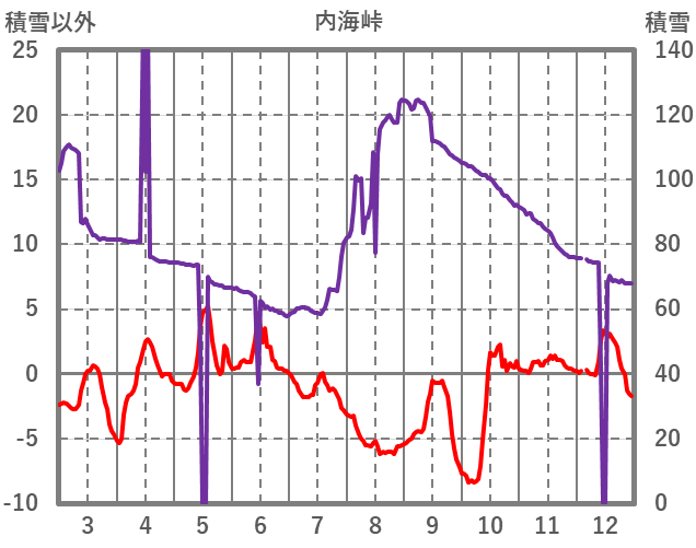 | 日 | 時 | 気温 | 降水 | 風向/風速 | 日照 | 積雪 | 降雪 |