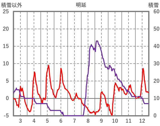 | 日 | 時 | 気温 | 降水 | 風向/風速 | 日照 | 積雪 | 降雪 |