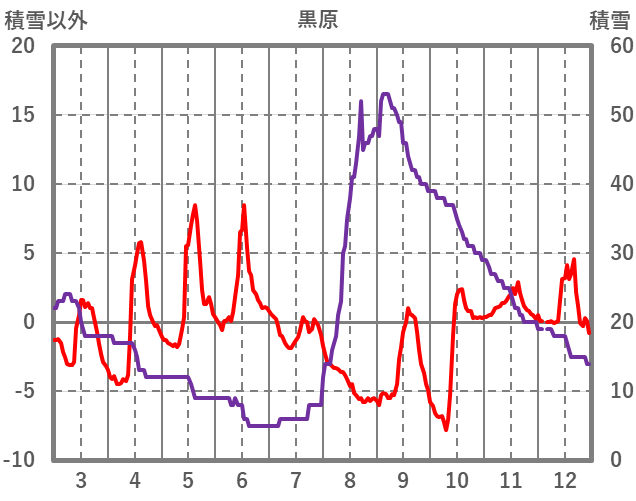 | 日 | 時 | 気温 | 降水 | 風向/風速 | 日照 | 積雪 | 降雪 |
