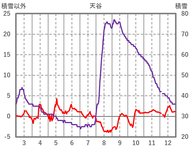 | 日 | 時 | 気温 | 降水 | 風向/風速 | 日照 | 積雪 | 降雪 |
