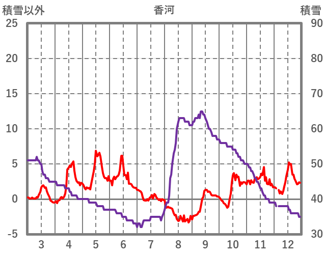 | 日 | 時 | 気温 | 降水 | 風向/風速 | 日照 | 積雪 | 降雪 |