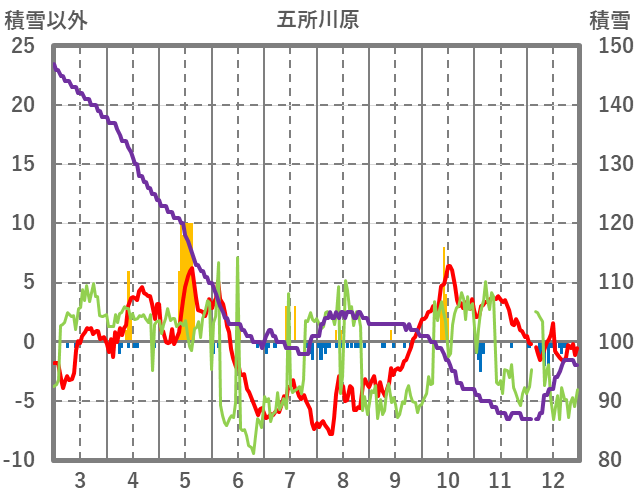 | 日 | 時 | 気温 | 降水 | 風向/風速 | 日照 | 積雪 | 降雪 |