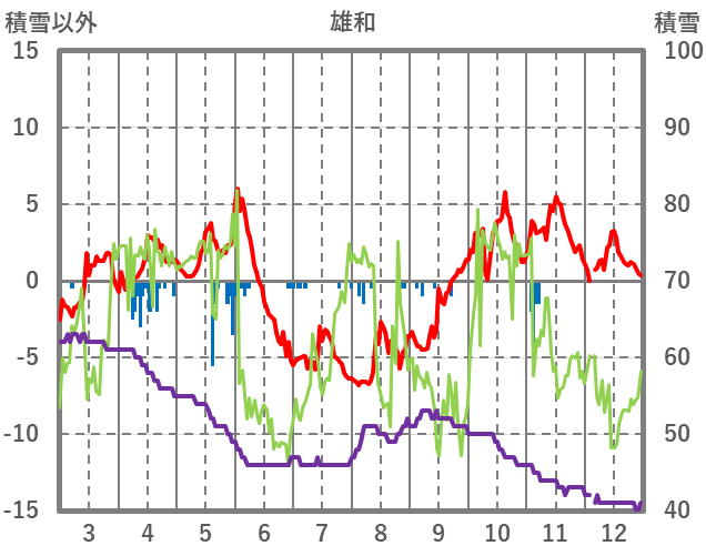 | 日 | 時 | 気温 | 降水 | 風向/風速 | 日照 | 積雪 | 降雪 |
