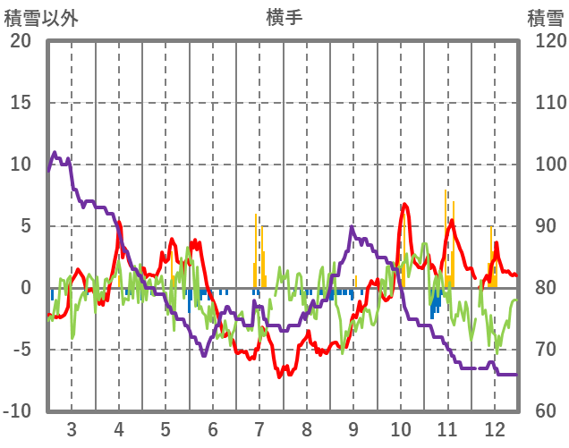 | 日 | 時 | 気温 | 降水 | 風向/風速 | 日照 | 積雪 | 降雪 |