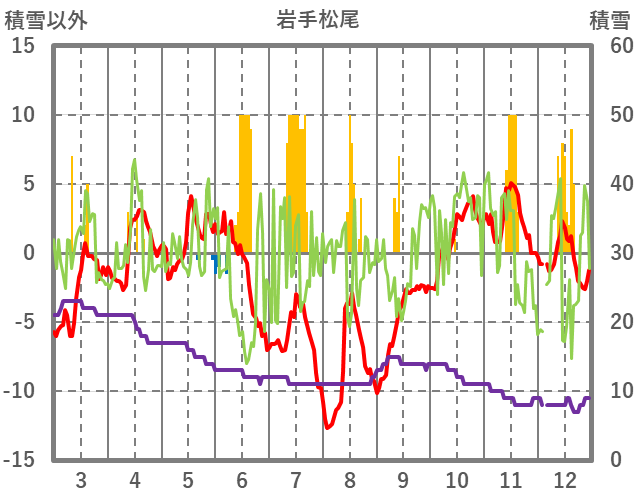 | 日 | 時 | 気温 | 降水 | 風向/風速 | 日照 | 積雪 | 降雪 |