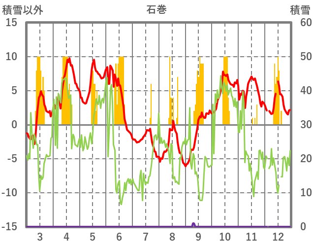| 日 | 時 | 気温 | 降水 | 風向/風速 | 日照 | 積雪 | 降雪 |