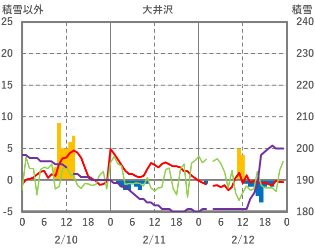 | 日 | 時 | 気温 | 降水 | 風向/風速 | 日照 | 積雪 | 降雪 |