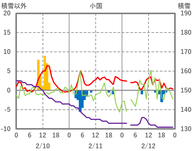 | 日 | 時 | 気温 | 降水 | 風向/風速 | 日照 | 積雪 | 降雪 |