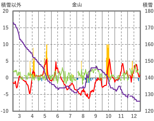 | 日 | 時 | 気温 | 降水 | 風向/風速 | 日照 | 積雪 | 降雪 |