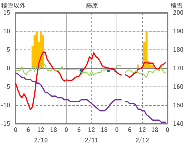 | 日 | 時 | 気温 | 降水 | 風向/風速 | 日照 | 積雪 | 降雪 |