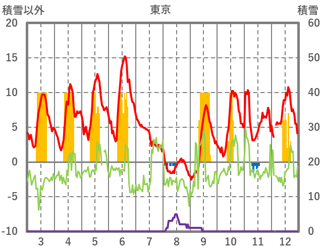 | 日 | 時 | 気温 | 降水 | 風向/風速 | 日照 | 積雪 | 降雪 |