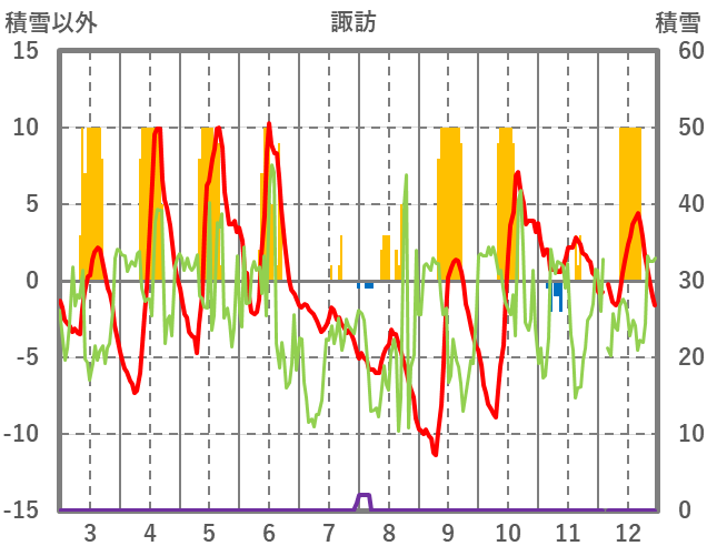 | 日 | 時 | 気温 | 降水 | 風向/風速 | 日照 | 積雪 | 降雪 |