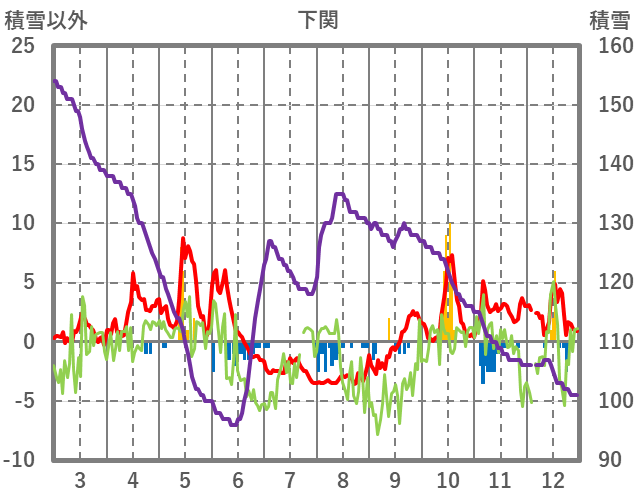 | 日 | 時 | 気温 | 降水 | 風向/風速 | 日照 | 積雪 | 降雪 |