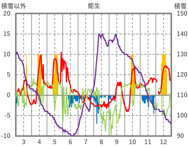 | 日 | 時 | 気温 | 降水 | 風向/風速 | 日照 | 積雪 | 降雪 |