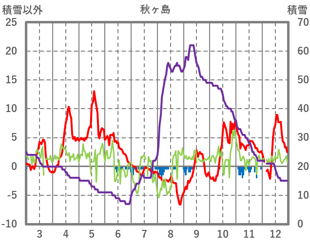 | 日 | 時 | 気温 | 降水 | 風向/風速 | 日照 | 積雪 | 降雪 |