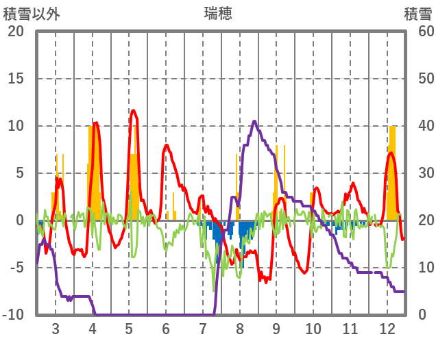 | 日 | 時 | 気温 | 降水 | 風向/風速 | 日照 | 積雪 | 降雪 |