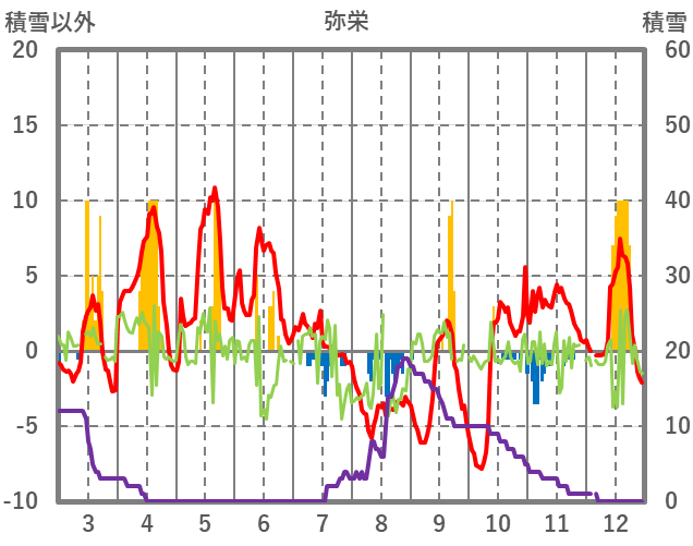 | 日 | 時 | 気温 | 降水 | 風向/風速 | 日照 | 積雪 | 降雪 |