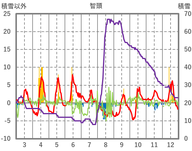 | 日 | 時 | 気温 | 降水 | 風向/風速 | 日照 | 積雪 | 降雪 |