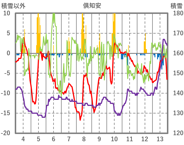 | 日 | 時 | 気温 | 降水 | 風向/風速 | 日照 | 積雪 | 降雪 |