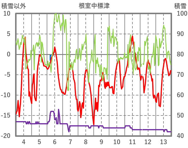 | 日 | 時 | 気温 | 降水 | 風向/風速 | 日照 | 積雪 | 降雪 |