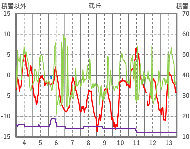 | 日 | 時 | 気温 | 降水 | 風向/風速 | 日照 | 積雪 | 降雪 |