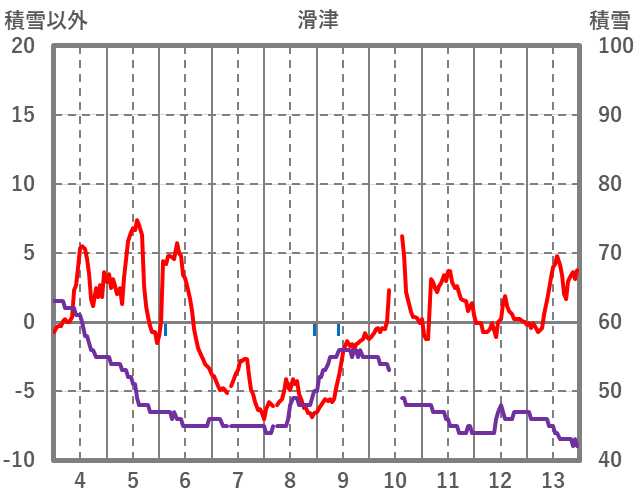 | 日 | 時 | 気温 | 降水 | 風向/風速 | 日照 | 積雪 | 降雪 |