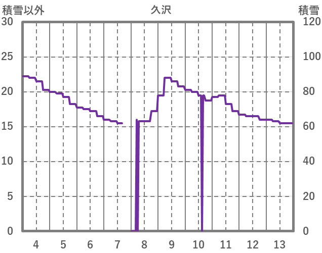 | 日 | 時 | 気温 | 降水 | 風向/風速 | 日照 | 積雪 | 降雪 |