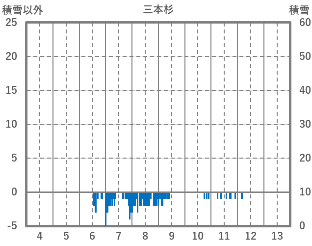 | 日 | 時 | 気温 | 降水 | 風向/風速 | 日照 | 積雪 | 降雪 |