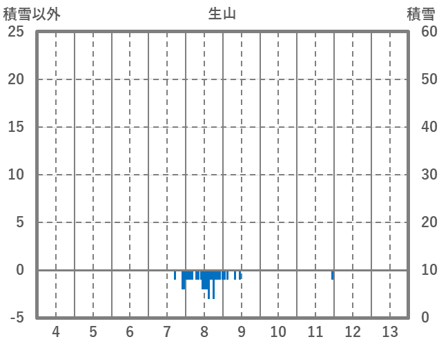 | 日 | 時 | 気温 | 降水 | 風向/風速 | 日照 | 積雪 | 降雪 |