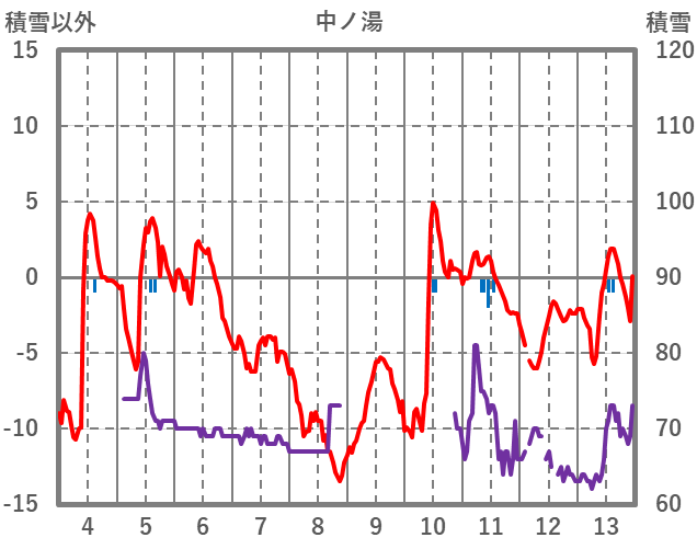 | 日 | 時 | 気温 | 降水 | 風向/風速 | 日照 | 積雪 | 降雪 |