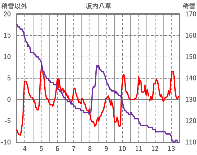 | 日 | 時 | 気温 | 降水 | 風向/風速 | 日照 | 積雪 | 降雪 |
