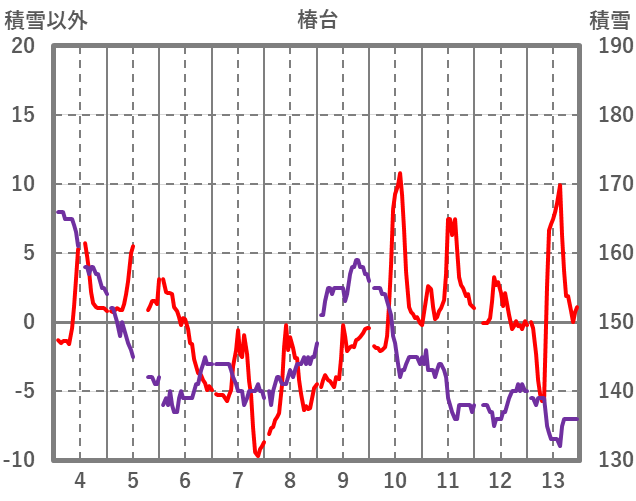 | 日 | 時 | 気温 | 降水 | 風向/風速 | 日照 | 積雪 | 降雪 |