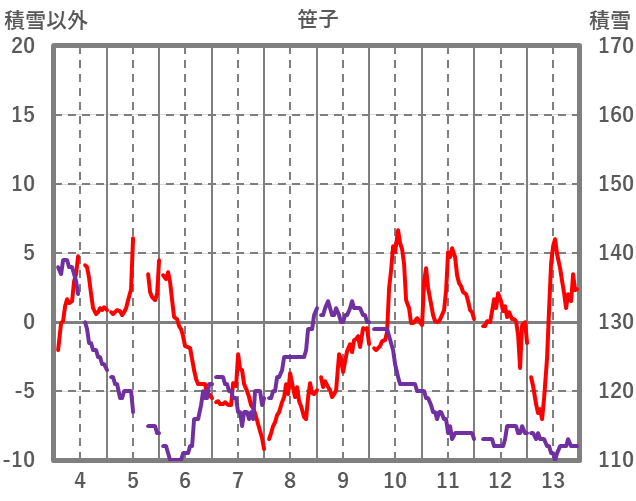 | 日 | 時 | 気温 | 降水 | 風向/風速 | 日照 | 積雪 | 降雪 |