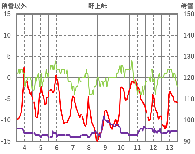 | 日 | 時 | 気温 | 降水 | 風向/風速 | 日照 | 積雪 | 降雪 |