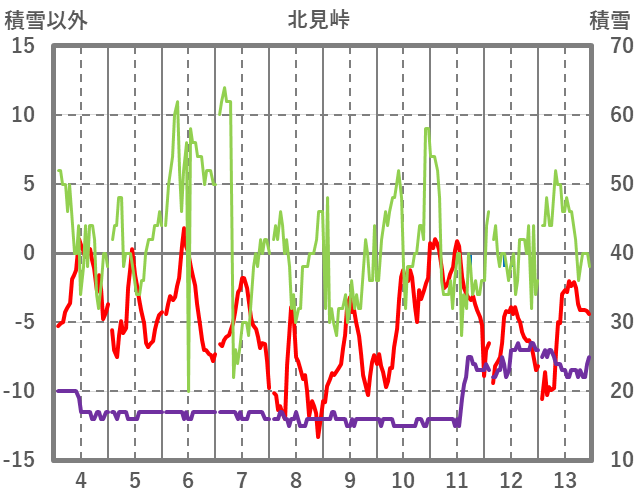 | 日 | 時 | 気温 | 降水 | 風向/風速 | 日照 | 積雪 | 降雪 |