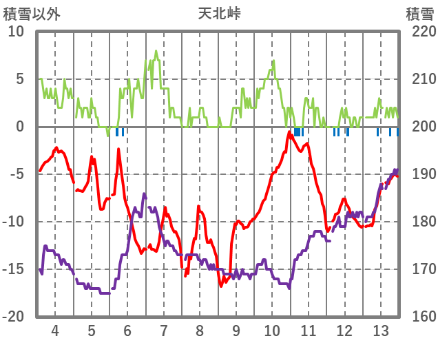 | 日 | 時 | 気温 | 降水 | 風向/風速 | 日照 | 積雪 | 降雪 |