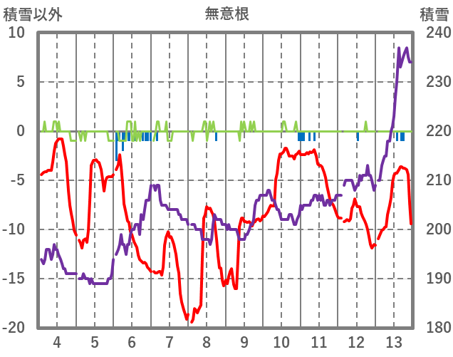 | 日 | 時 | 気温 | 降水 | 風向/風速 | 日照 | 積雪 | 降雪 |