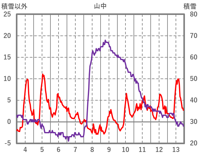 | 日 | 時 | 気温 | 降水 | 風向/風速 | 日照 | 積雪 | 降雪 |