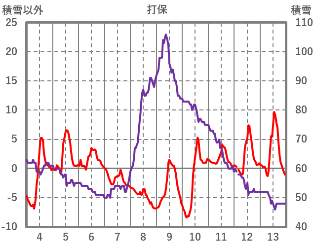 | 日 | 時 | 気温 | 降水 | 風向/風速 | 日照 | 積雪 | 降雪 |