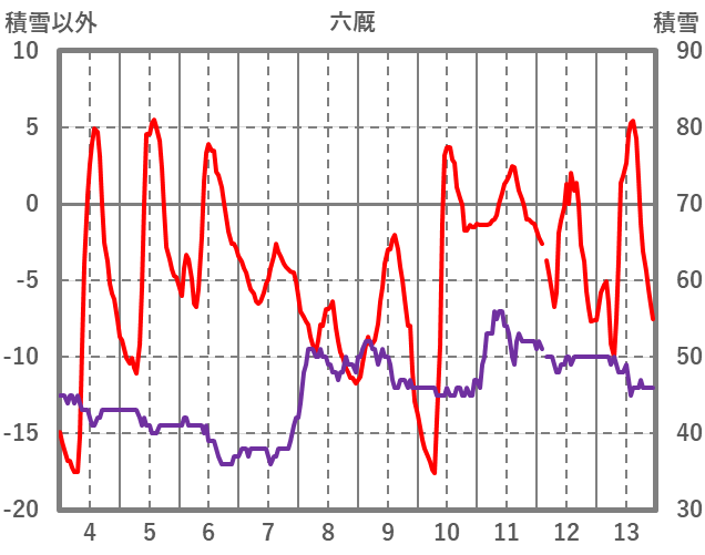 | 日 | 時 | 気温 | 降水 | 風向/風速 | 日照 | 積雪 | 降雪 |