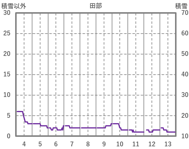 | 日 | 時 | 気温 | 降水 | 風向/風速 | 日照 | 積雪 | 降雪 |