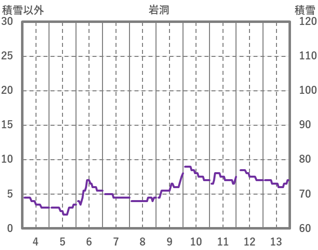 | 日 | 時 | 気温 | 降水 | 風向/風速 | 日照 | 積雪 | 降雪 |