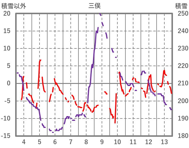 | 日 | 時 | 気温 | 降水 | 風向/風速 | 日照 | 積雪 | 降雪 |
